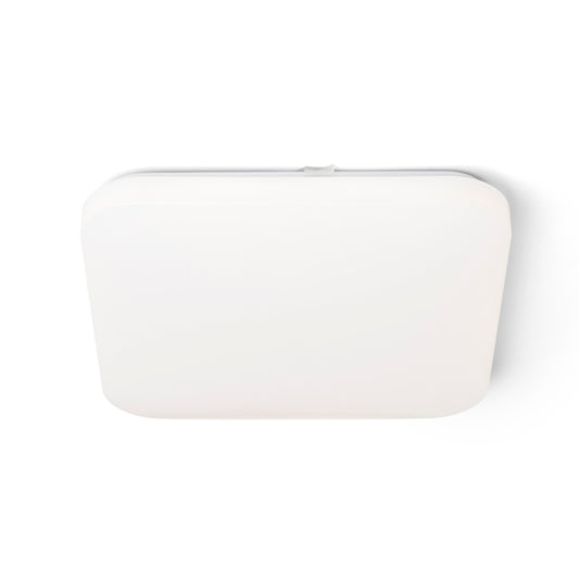 Stropna svjetiljka s ugrađenim LED svjetlom i minimalističkim okvirom. Svjetiljka uključuje ugrađeni prekidač za promjenu temperature boje svjetla (3000K, 4000K, 6500K).