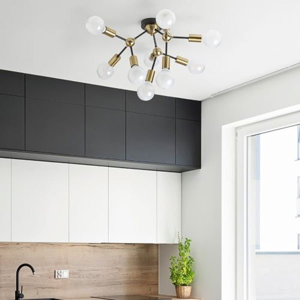 Visilica s dekorativnim mesinganim poklopcima grla na šipki. Oblik rasvjetnog tijela može se prilagoditi podešavanjem krakova. Prikladno za LED izvore svjetla s E27 grlom.