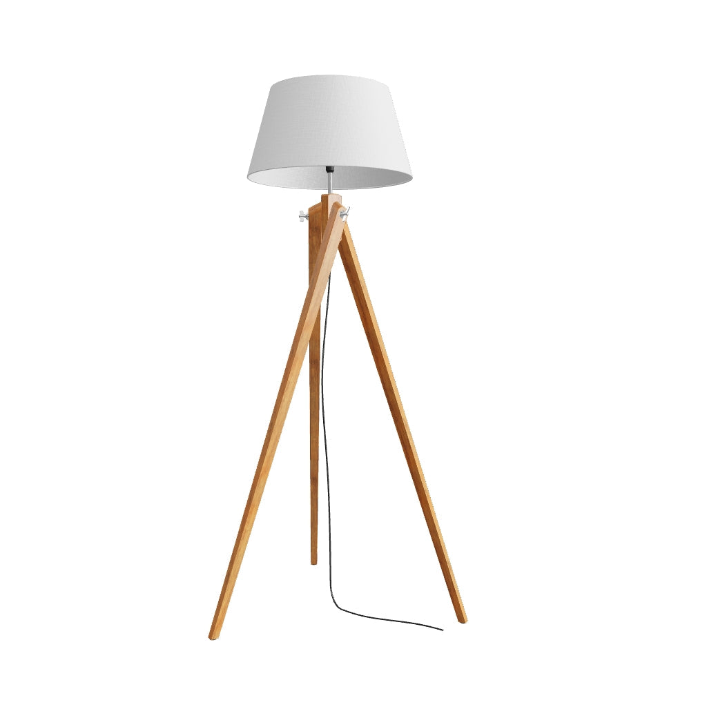 Podna lampa s tekstilnim sjenilom i elegantnim postoljem od bambusa. Prikladno za LED izvore svjetla s navojem E27.