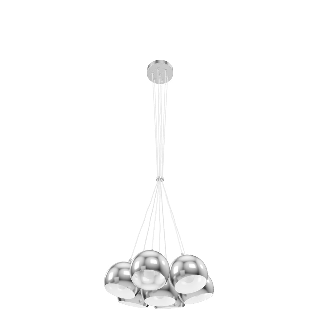 Viseća svjetiljka koja se sastoji od 7 krom sjenila pričvršćenih za jednu stropnu bazu. E27 grla.