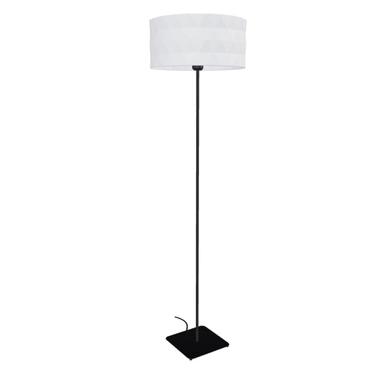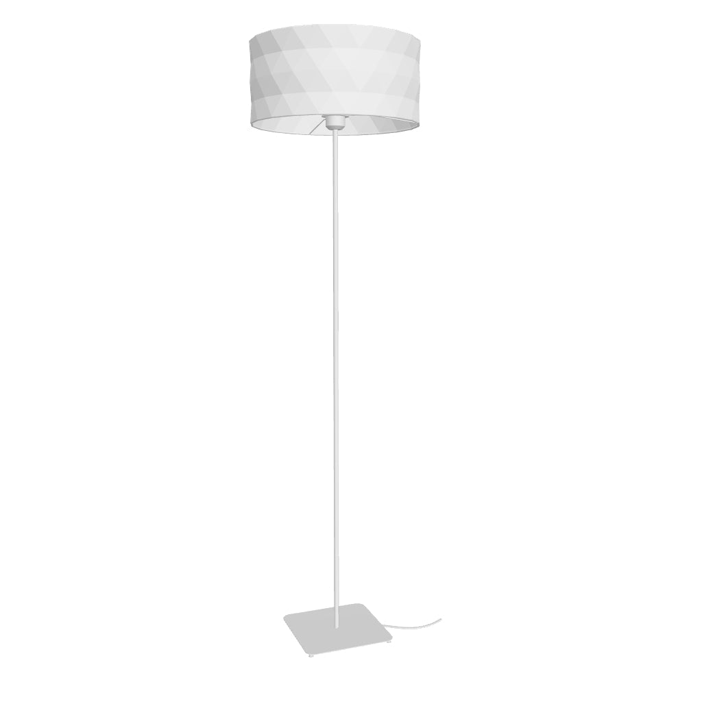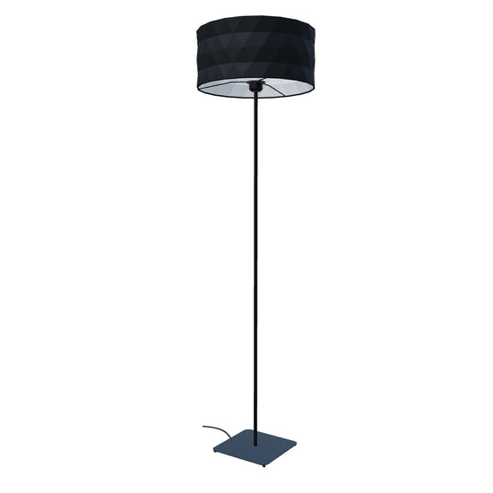 Podna lampa s tekstilnim sjenilom s geometrijskom 3D površinom i metalnim lakiranim postoljem. Prikladno za LED izvore svjetla s navojem E27.