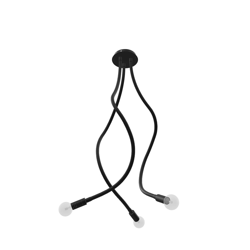 Stropna svjetiljka s tri vrata od pipka prekrivenim silikonom s mogućnošću podešavanja u bilo koji smjer. Pogodna za E27 dekorativne žarulje ili reflektore.