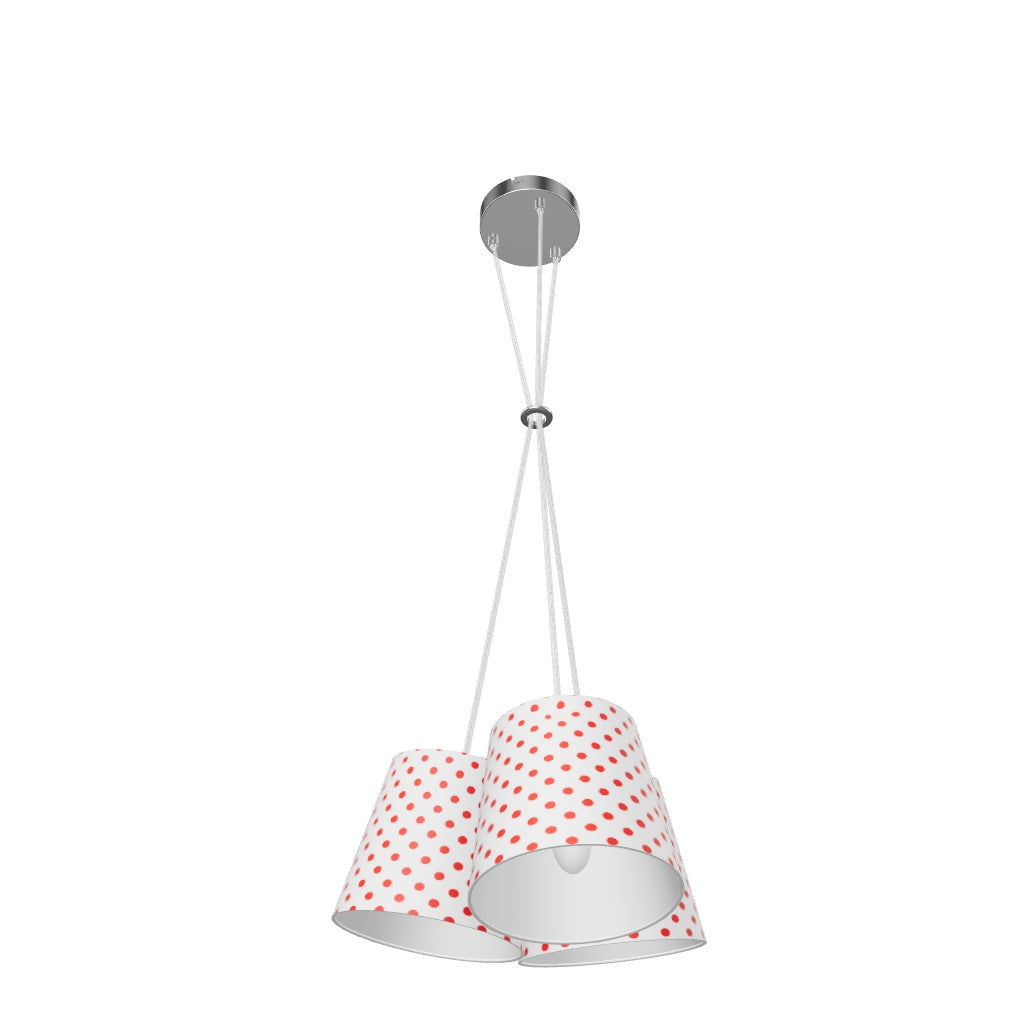 Viseća svjetiljka s jednom bazom i tri tekstilna sjenila, za tri žarulje E14.