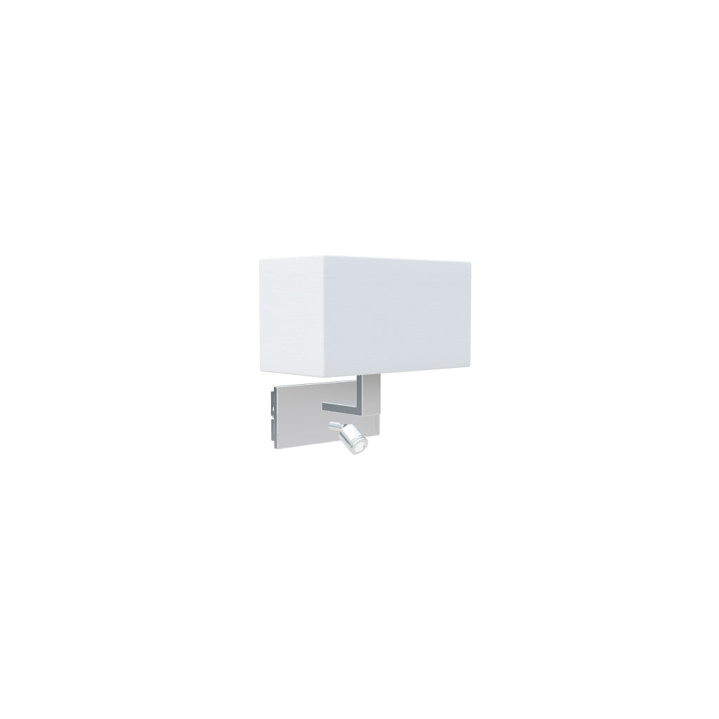 Zidna svjetiljka sa strukturiranim tekstilnim sjenilom i 3W LED lampicom za čitanje. Svjetla se mogu pojedinačno uključiti/isključiti pomoću prekidača na bazi.