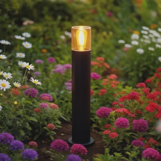 QUINN 60 floor black amber-colored glass 230V LED E27 11W IP54