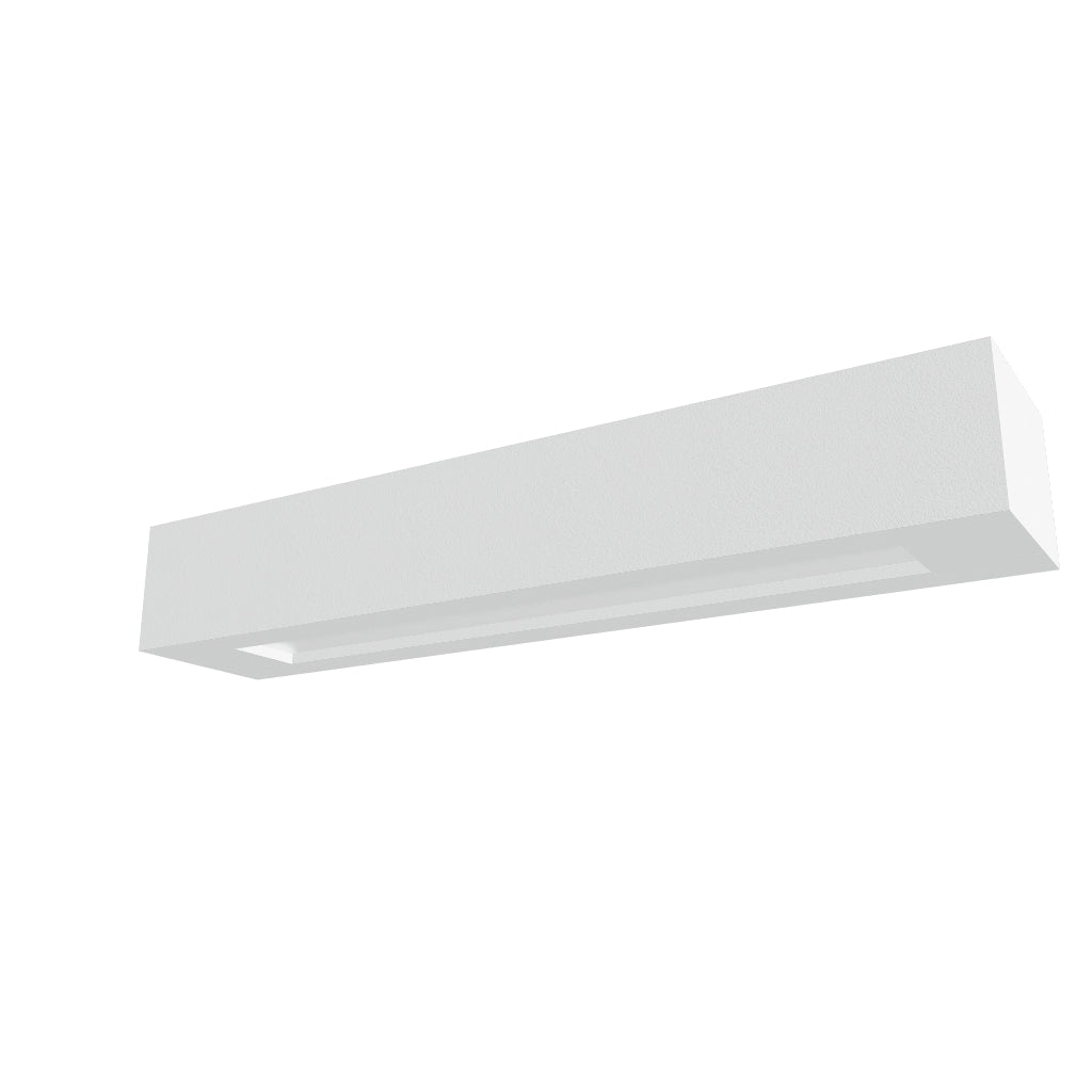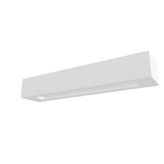 Gipsana zidna svjetiljka s gornjim/donjim osvjetljenjem. Dno svjetiljke je od satiniranog stakla. Površinu je moguće obojati bojom za interijere.